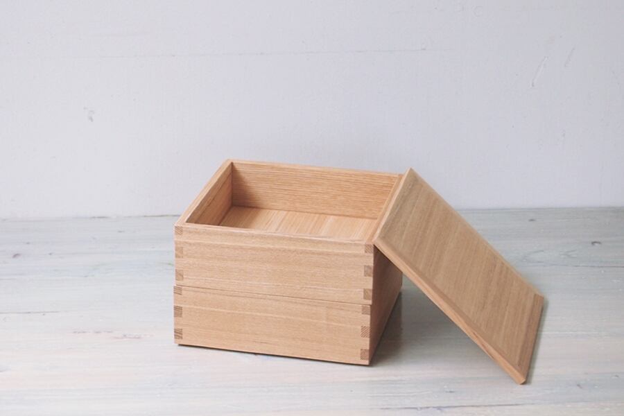 越前塗 白木塗タモ6.0二段重 ナチュラル